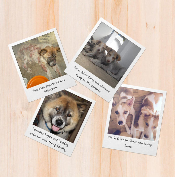 Freckles, Tia and Star all were rescued off the streets by Hand to Paw, one of the rescues we partner with.